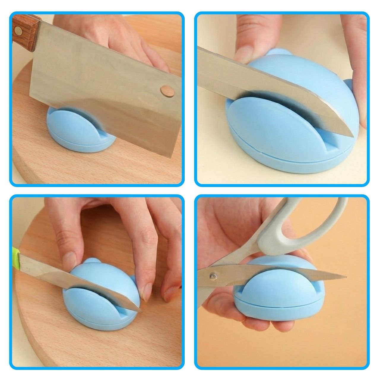 SharpCut je vhodný pre kuchynské nože, malé ovocné nože, nožnice a iné rezacie nástroje. S jedným brúsičom môžete udržiavať všetky čepele vo vašej kuchyni ostré. Rýchlo obnovuje ostrosť a umožňuje hladké krájanie bez trhania potravín.