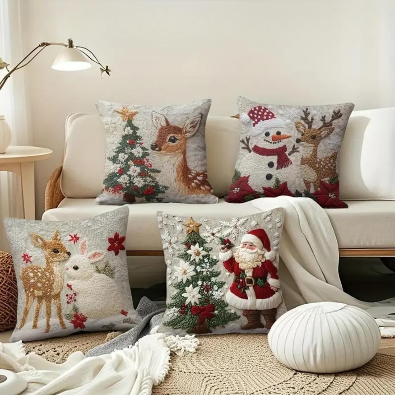 Ak túžite po čistom, upratanom domove a nechcete veľa dekorácií, vianočné obliečky na vankúše sú ideálnym riešením. Vytvorte jemnú, elegantnú sviatočnú atmosféru jednou jednoduchou zmenou. Vankúše zostávajú užitočné na odpočinok, zatiaľ čo obliečky pridávajú jemné teplo a štýl do miestnosti. Takže dodajte svojmu domovu sviatočný nádych s minimálnymi zmenami.