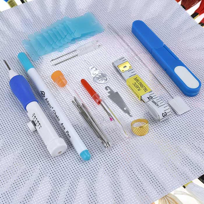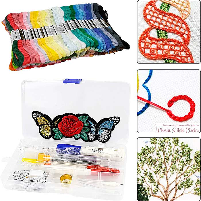 Obsahuje všetko od najlepších nití až po rôzne príslušenstvo, ktoré vám uľahčí učenie a zdokonaľovanie vyšívacích zručností.