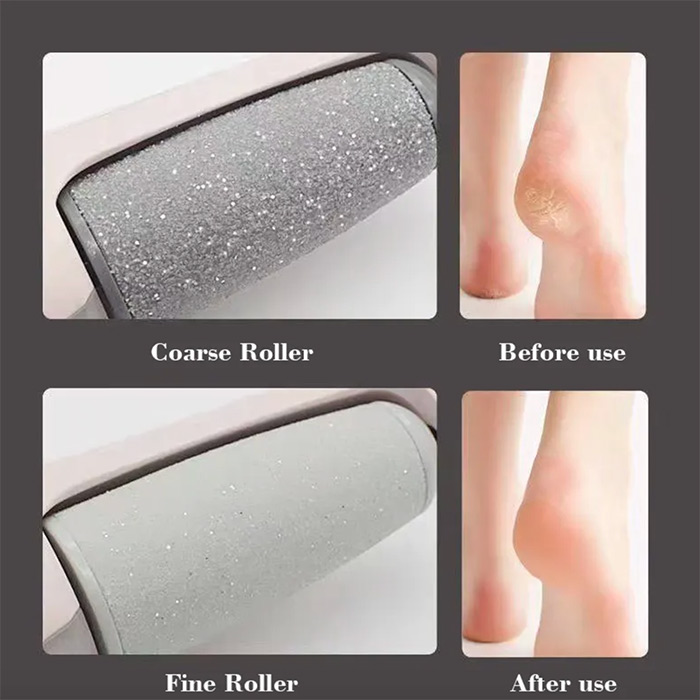 Každé chodidlo potrebuje inú starostlivosť, preto sú súčasťou balenia dva valčeky pre rôzne potreby. Hrubší odstraňuje tvrdšiu kožu, zatiaľ čo jemnejší poskytuje konečnú hladkosť. Vstavaná baterka umožňuje presnú aplikáciu aj na ťažko viditeľných miestach. Zariadenie je ľahko čistiteľné.