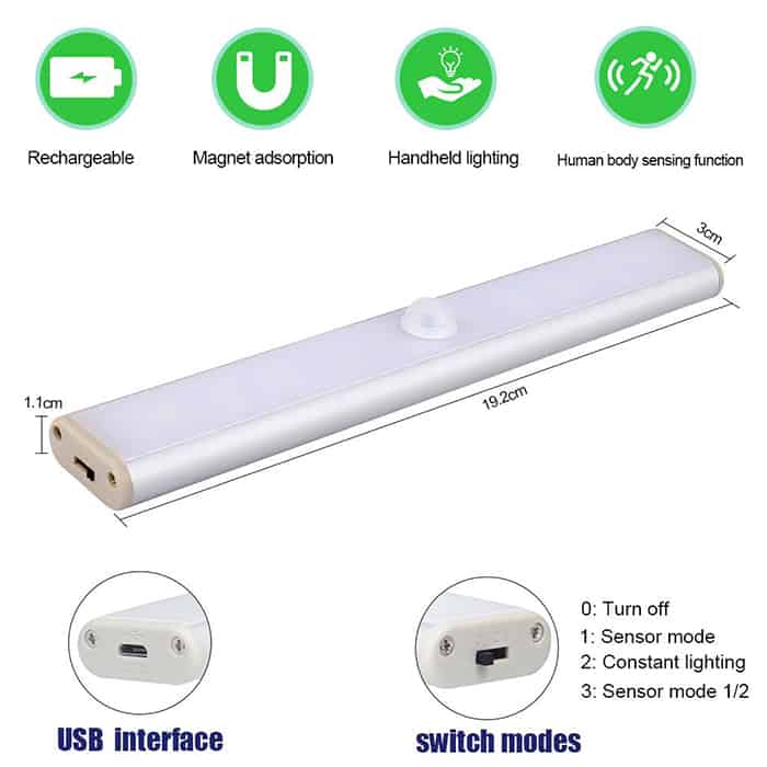 Najmodernejšie LED senzorové svetlo je najlepšou voľbou pre vnútorné osvetlenie, pretože je pohyblivé, má senzor a vydrží až 65 000 svetelných hodín! Inštalácia je jednoduchá a svetlo sa automaticky vypne po 20 sekundách nečinnosti.