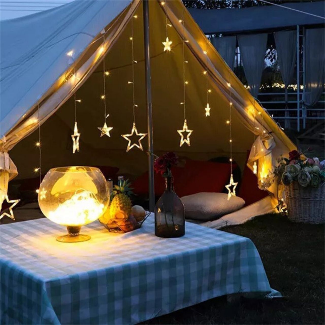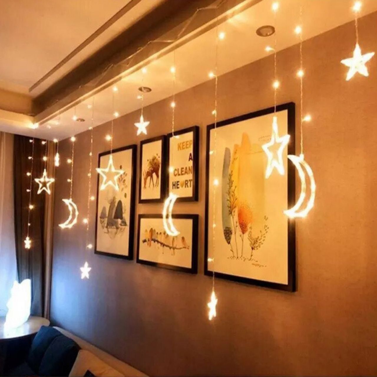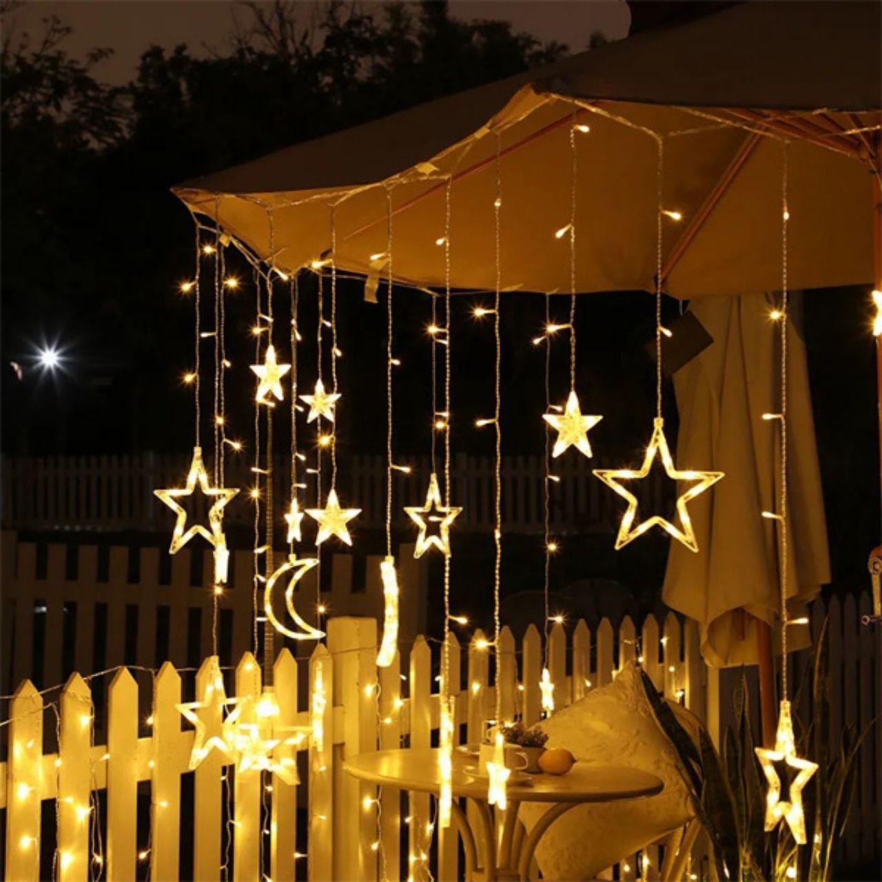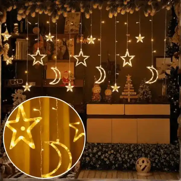 | V balení: | 1x sada dekoratívnych svetiel s motívom hviezd a mesiaca s konektorom do zásuvky (12 dekoratívnych hviezd a mesiacov) |