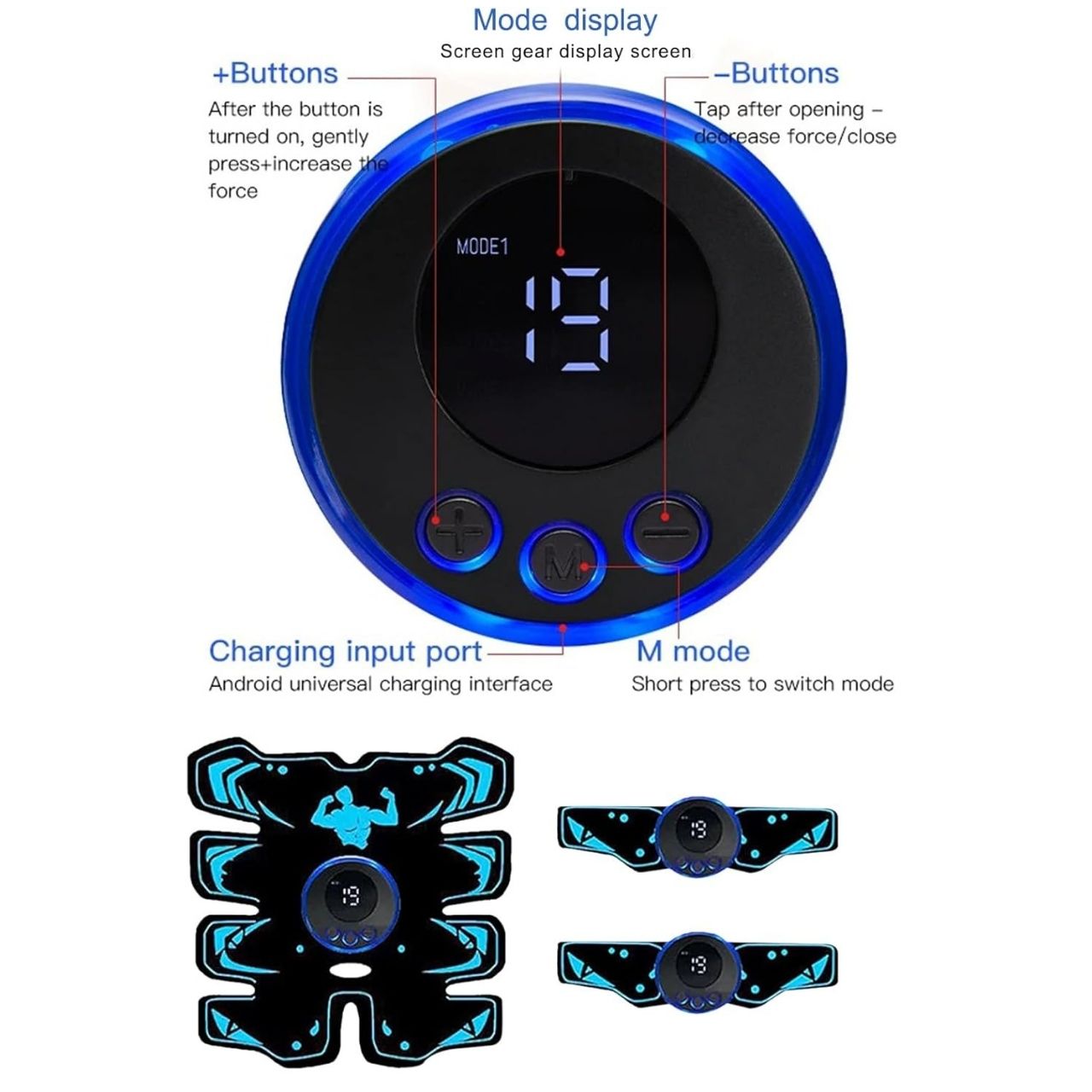 | V balení: | 1x elektrický stimulátor brušných svalov, 2x elektrický stimulátor rúk, 3x USB nabíjací kábel |