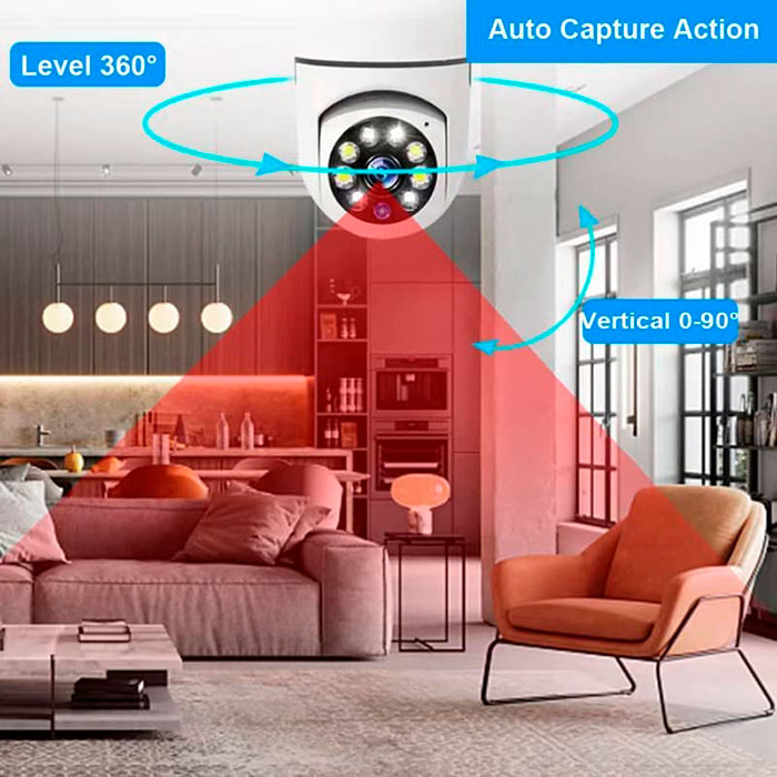 Kamera sa pohybuje o 360° doľava a doprava a o 90° nahor a nadol - prostredníctvom telefónu môžete kamerou pohybovať a ona sa automaticky začne pohybovať, keď zaznamená pohyb!